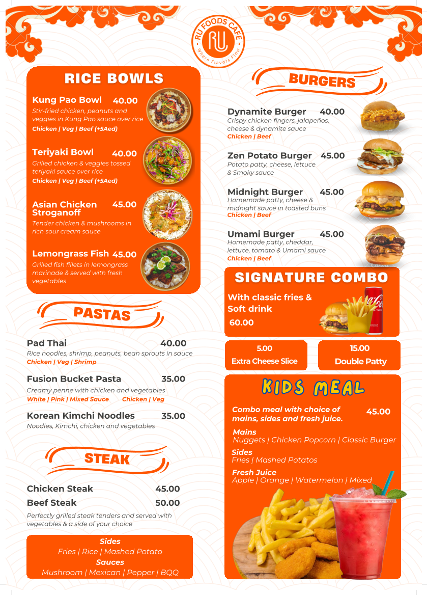 Ru Foods Cafe specializes in a diverse range of dishes that are sure to please every palate. Whether you're in the mood for a hearty Teriyaki bowl or succulent beef steak, each dish showcases the cafe's commitment to quality and flavor. The highlight, as noted by loyal customers, is their pasta; it’s been described as “phenomenal,” “rich in flavor,” and simply some of the best one can find—perfectly cooked and made with care.